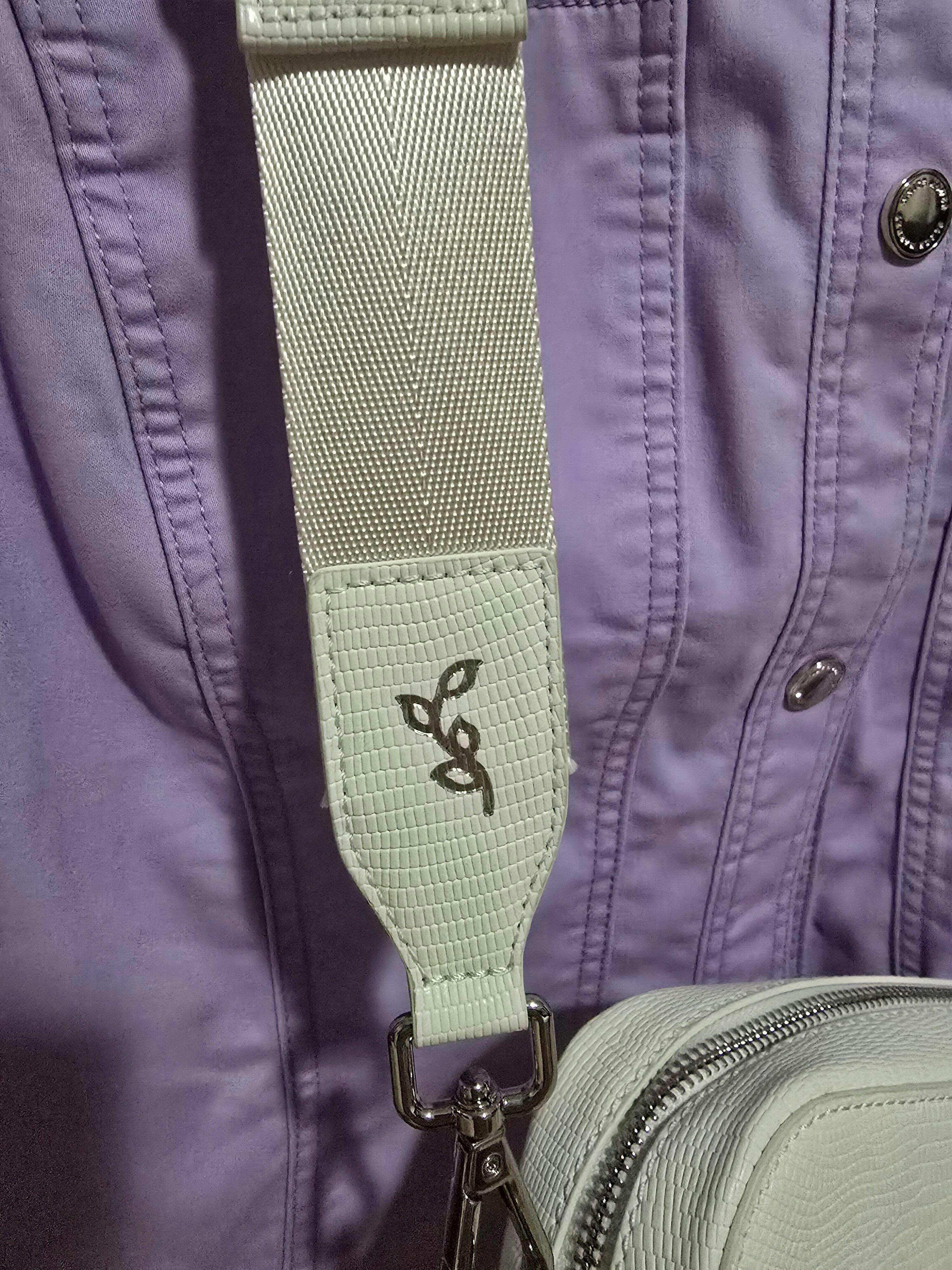 - Includes an adjustable nylon and vegan leather strap with a maximum length of 4'